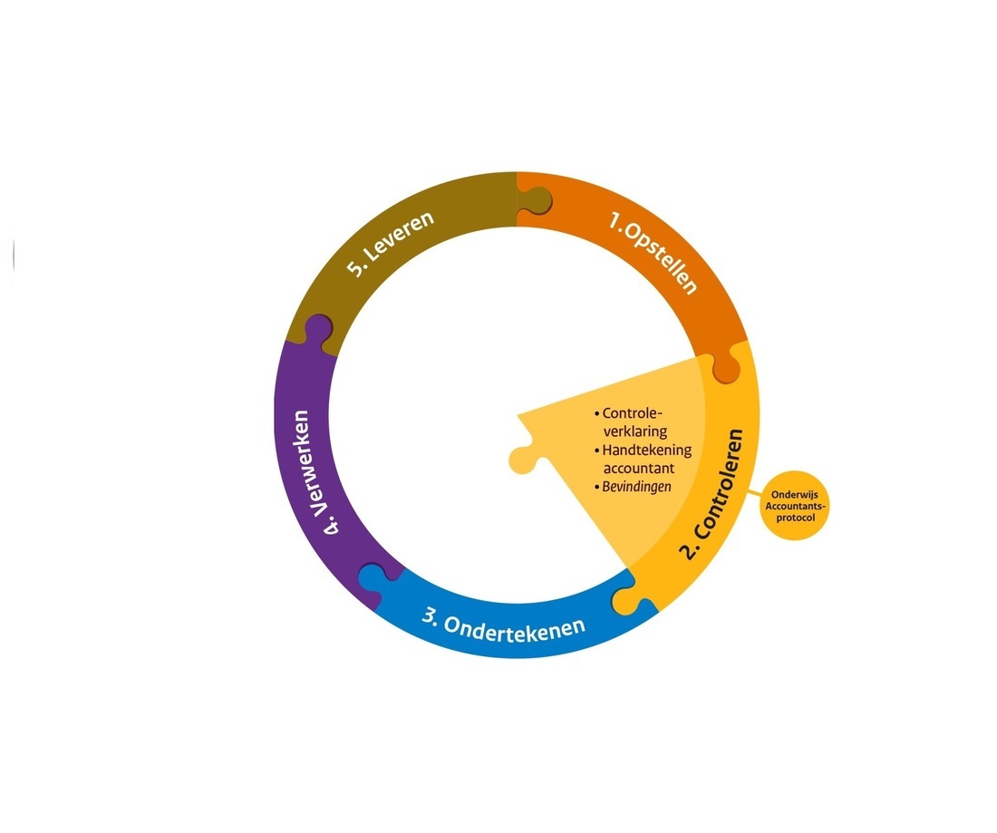 De accountant controleert op de gebruikelijke wijze het jaarverslag van de onderwijsinstelling. Als extra controle, controleert de account ook of de gegevens in de jaarrekening en een deel van het bestuursverslag juist en volledig door de onderwijsinstelling zijn gemarkeerd (getagd) met de elementen uit de OCW Taxonomie.